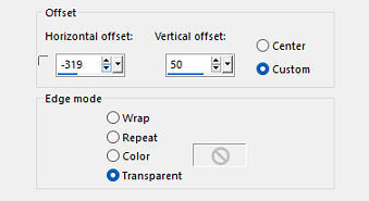 11. Effects / 3D Effects / Drop Shadow: 0 / 0 / 60 / 25. Cor: Preta 12. Abra o Deco-1.pspimage Edit / Copy Edit / Paste as a new layer na imagem Layers / Arrange / Move down 13. Abra o deco-2 Edit / Copy Edit / Paste as a new layer na imagem 14. Abra o deco-3 Edit / Copy Edit / Paste as a new layer na imagem Layers / Arrange / Bring to top Effects / Image Effects / Offset: -319 / 50 / Custom e Transparent marcados